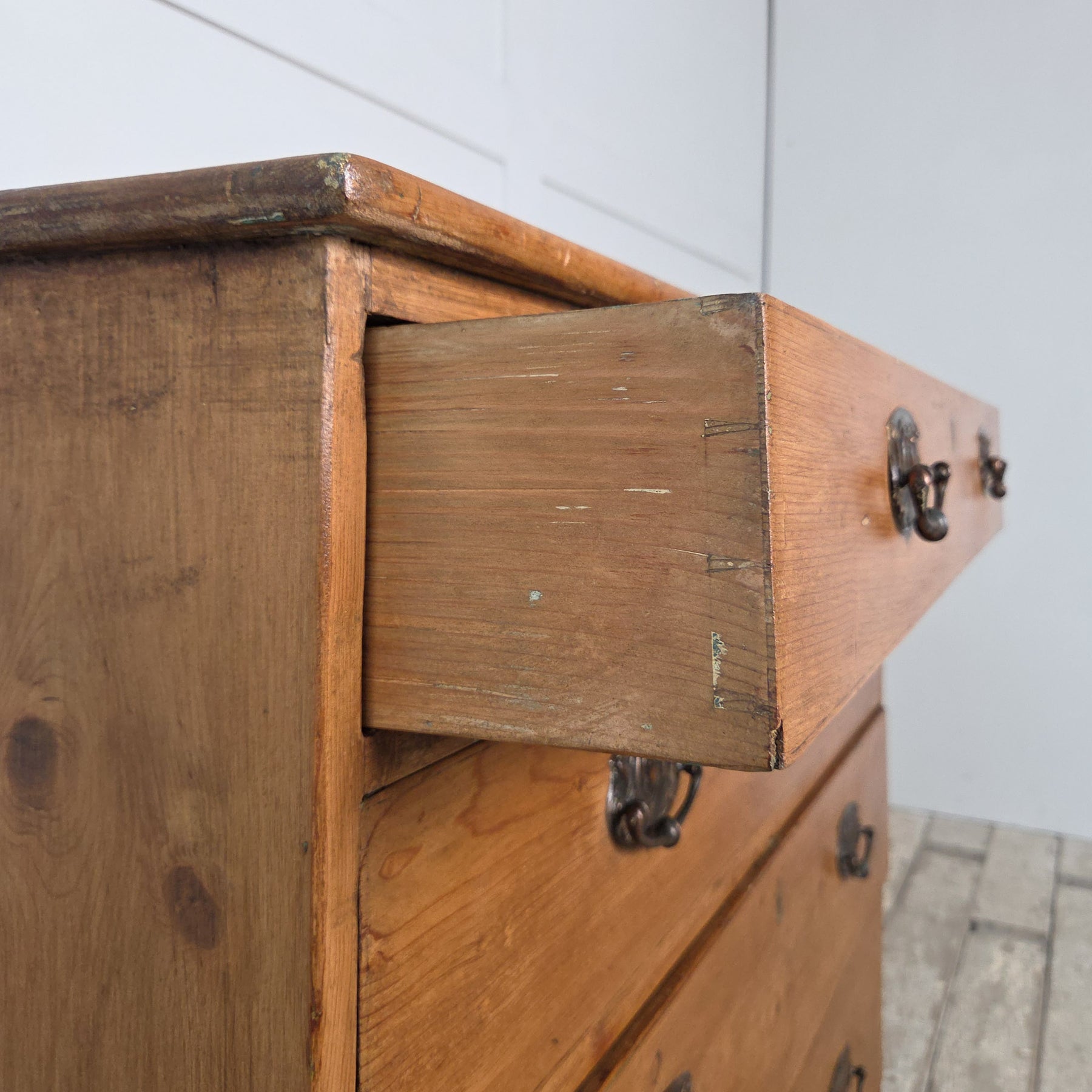 A charming early 19th-century Georgian pine chest of drawers, offering five drawers in a two-over-three layout.