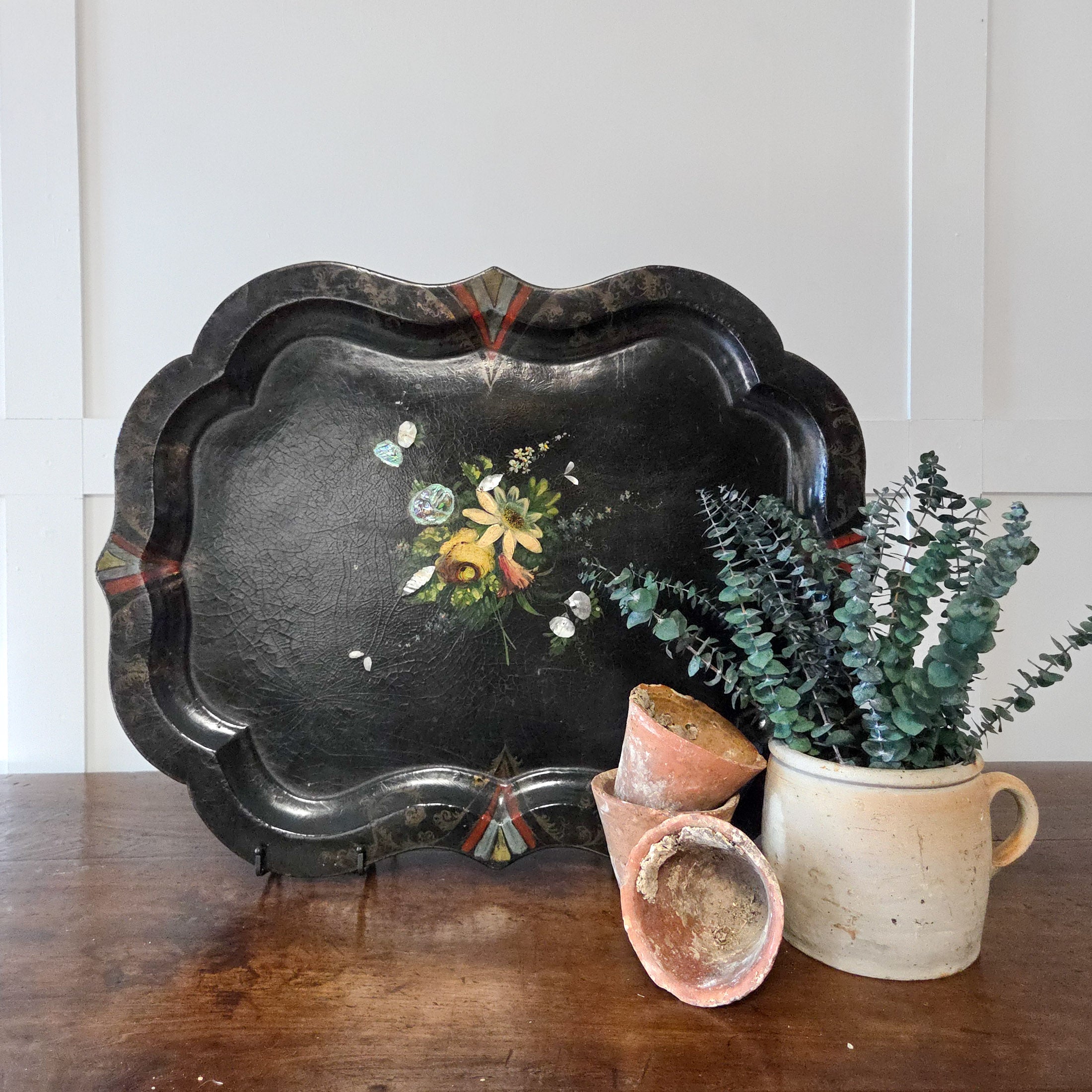 Trays like this were popular in the mid to late 19th century, prized for their durability and glossy lacquered finish, which gave the appearance of more expensive materials.