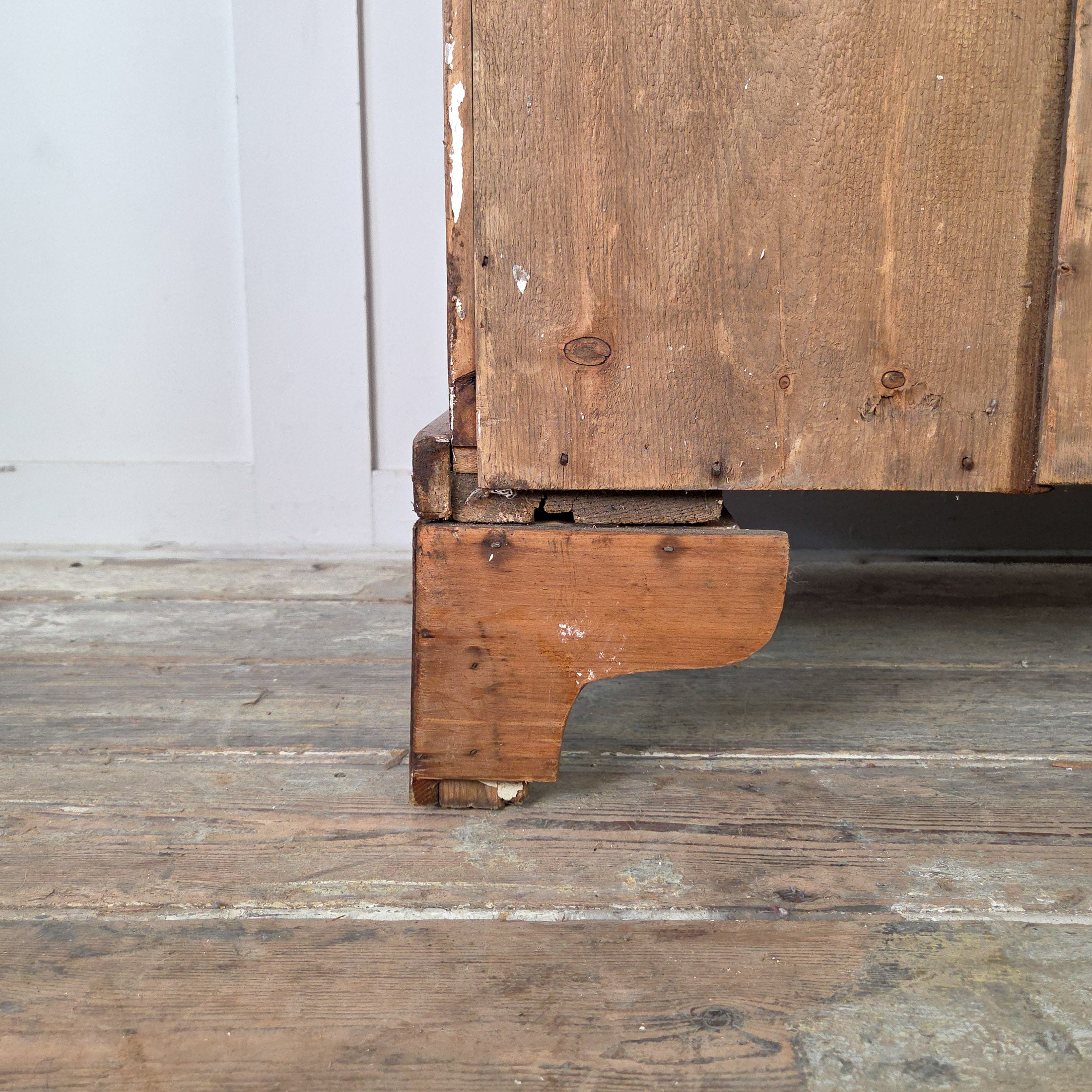 A late 19th-century Victorian pine chest of drawers, offering four drawers in a two-over-two arrangement and set on bracket style feet.