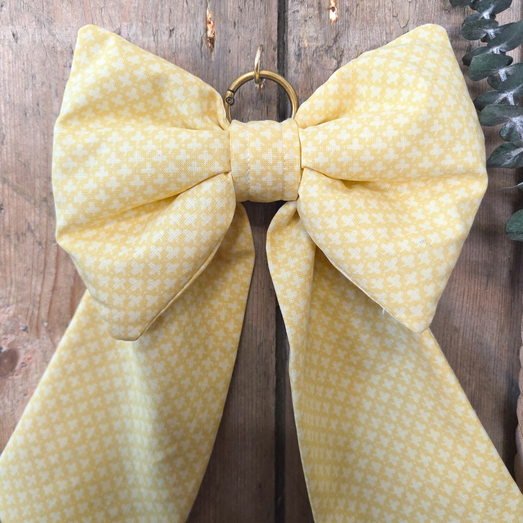Individually crafted with a structured, padded design and gently tapering tails, each bow is finished with an antiqued brass ring for easy hanging.