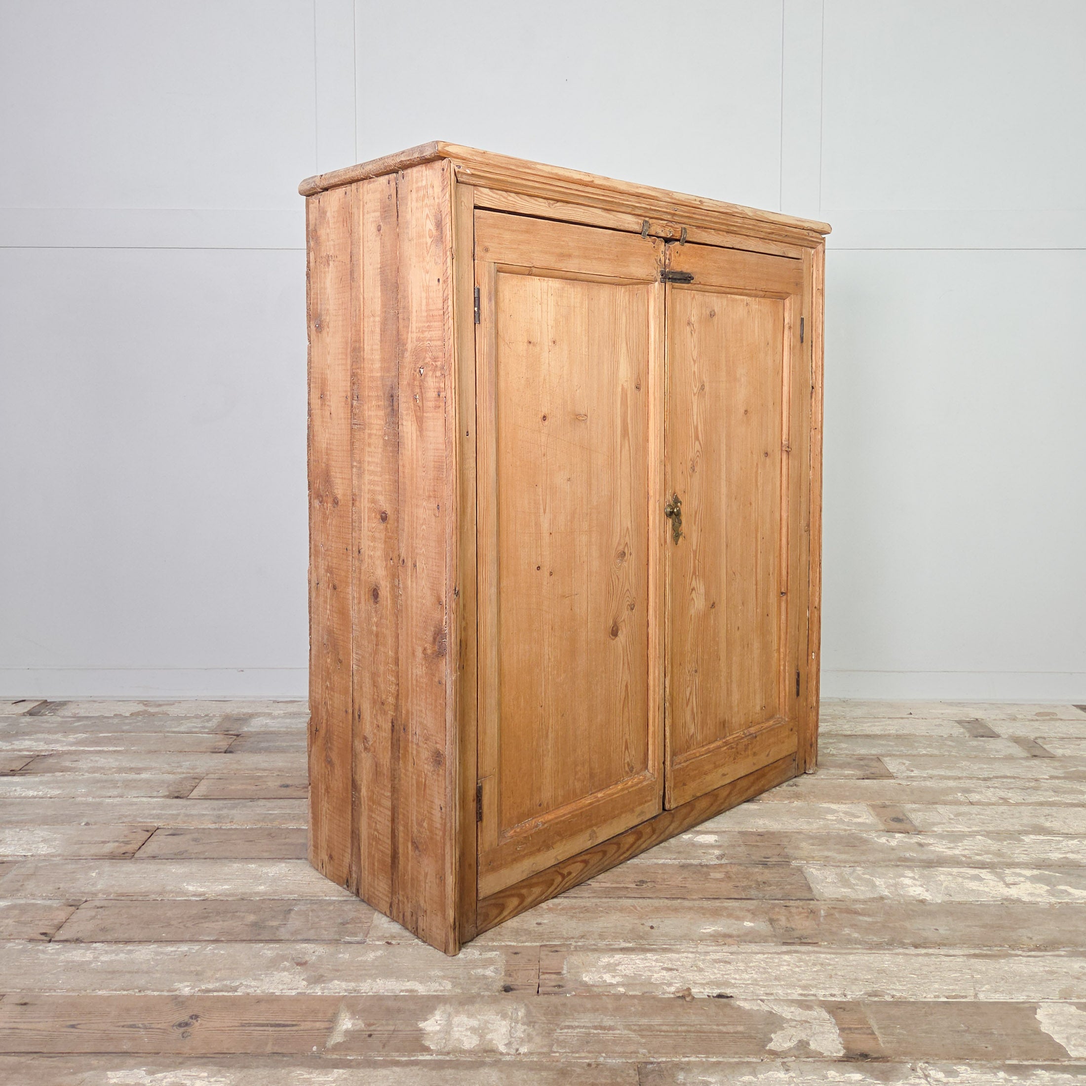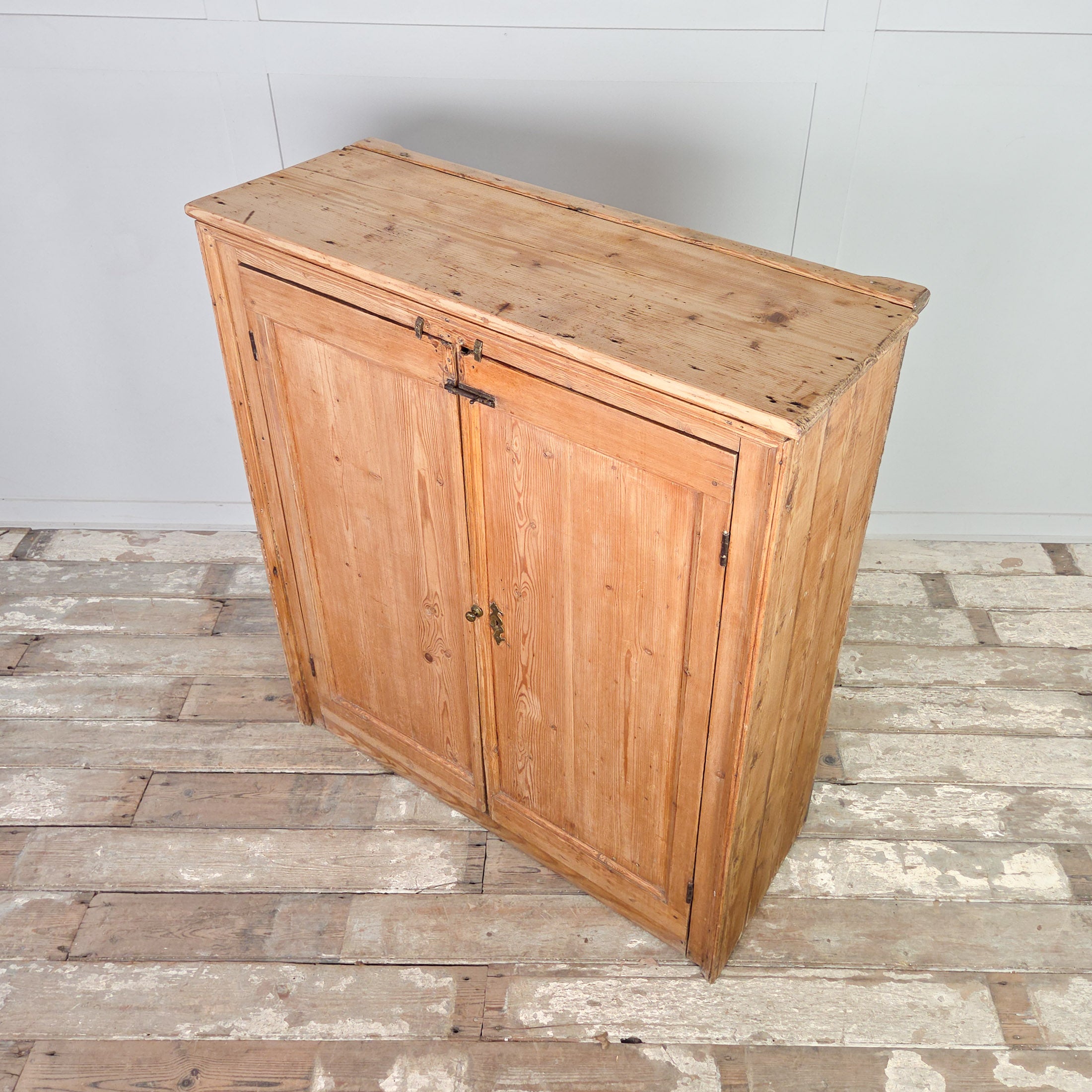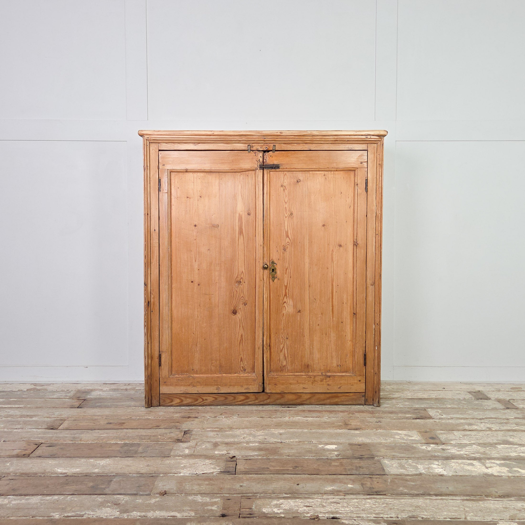 A late 19th-century Victorian pine cupboard, fitted with four shelves behind panelled doors.