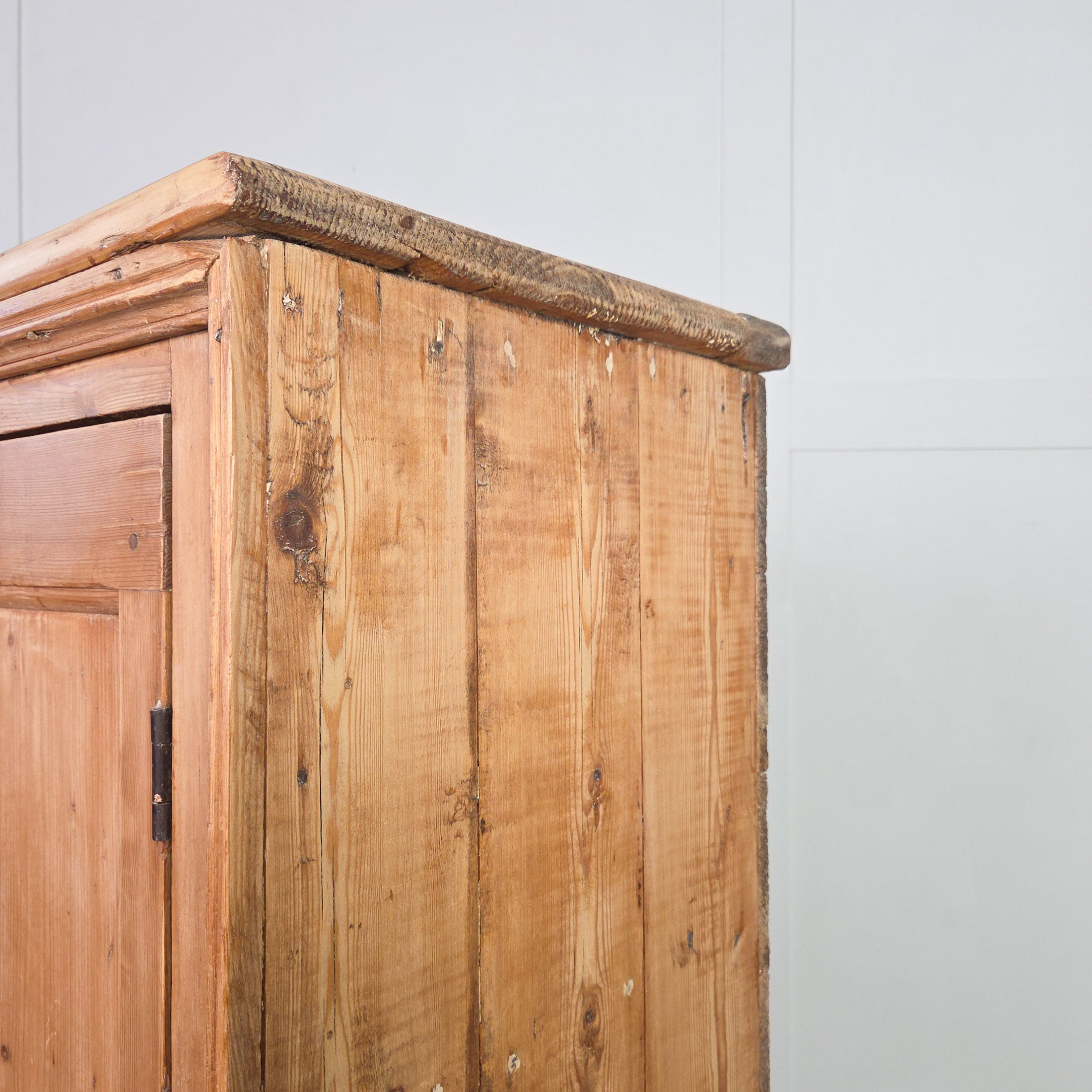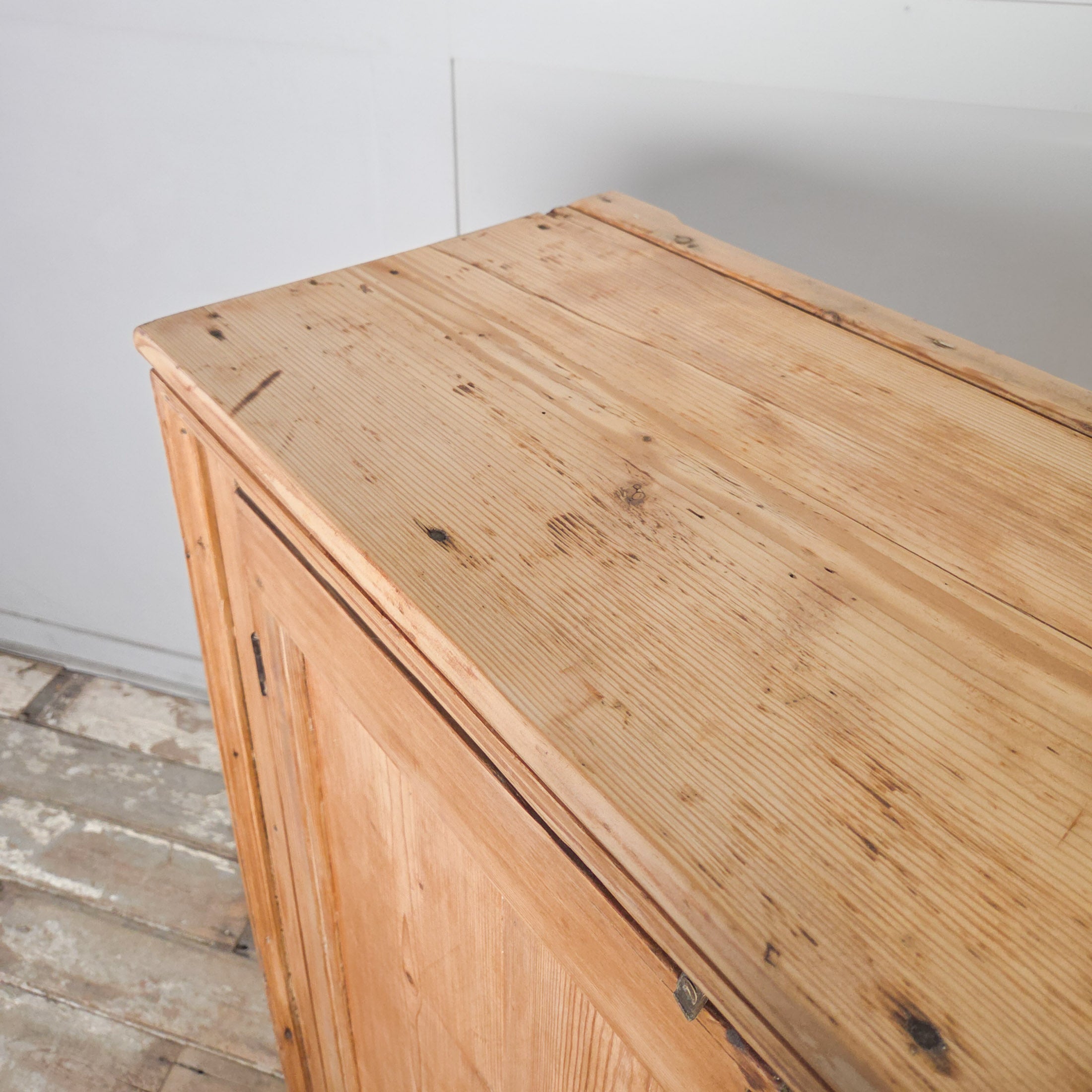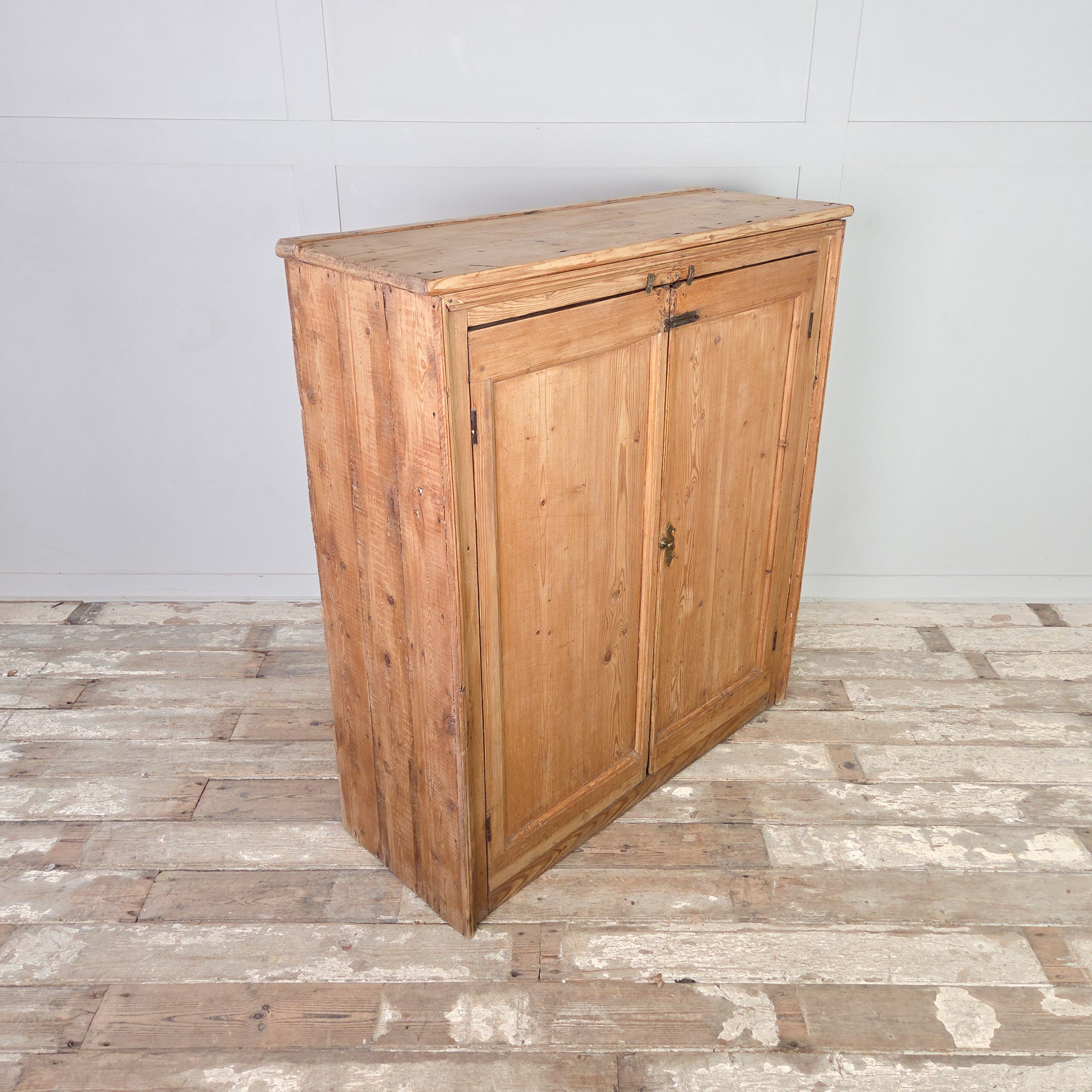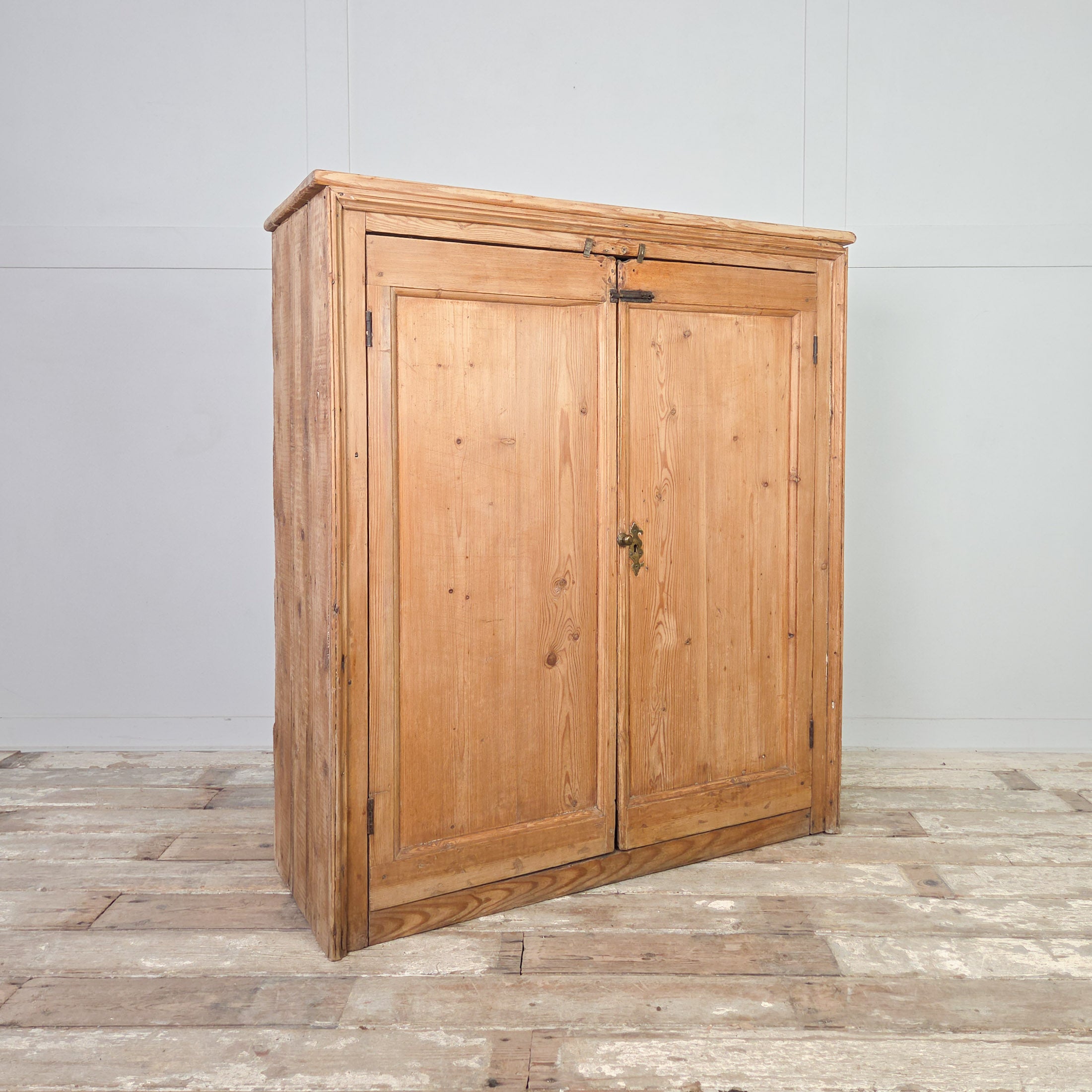 A late 19th-century Victorian pine cupboard, fitted with four shelves behind panelled doors.