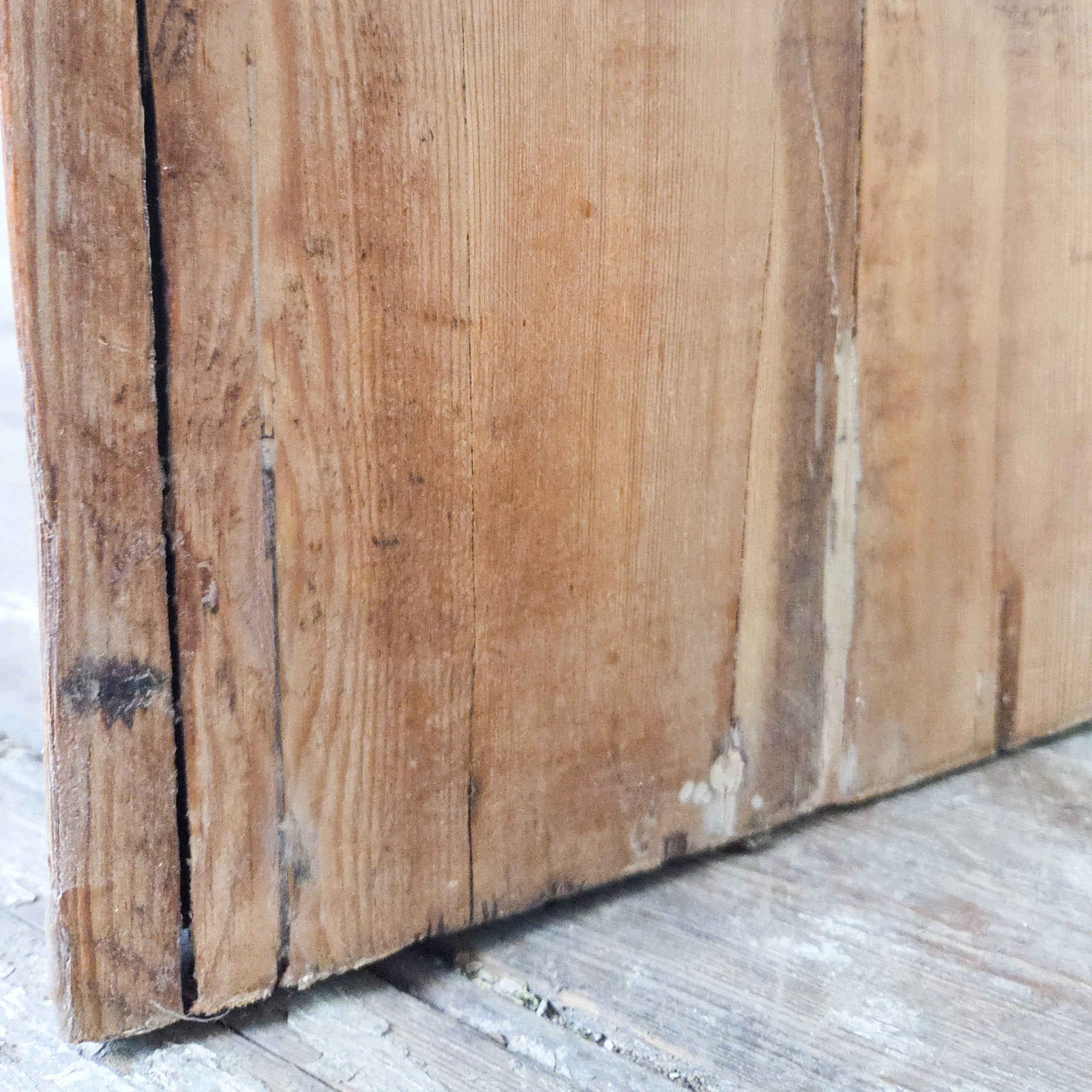 This antique cupboard is a simple yet versatile piece with plenty of rustic farmhouse charm. The panelled doors open to a fully shelved interior, offering useful storage across the width of the cupboard.