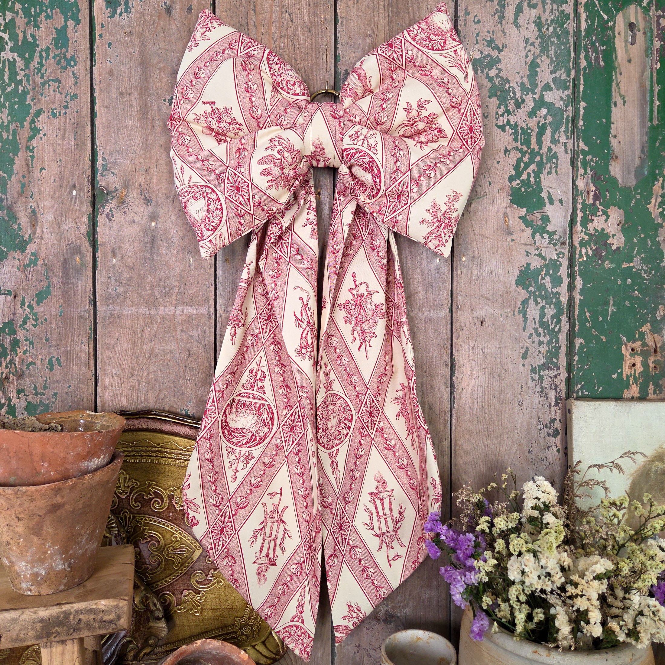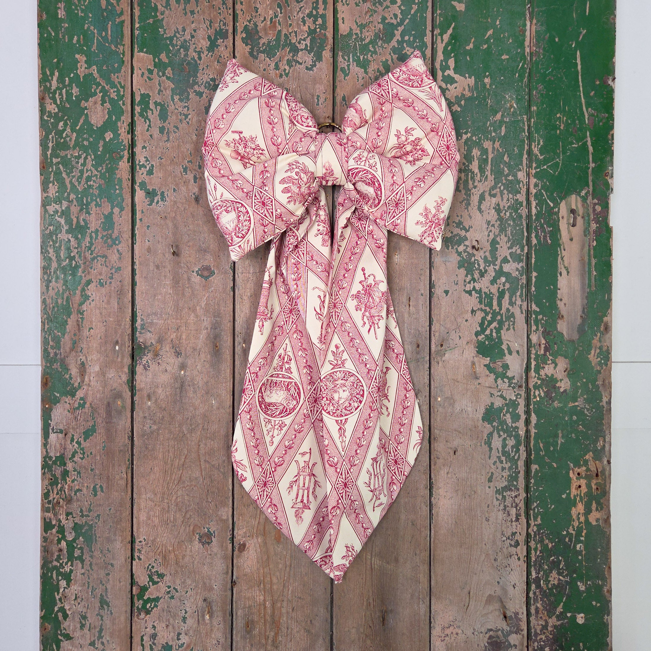 Individually crafted with a structured, padded design and gently tapering tails, each bow is finished with an antiqued brass ring for easy hanging.