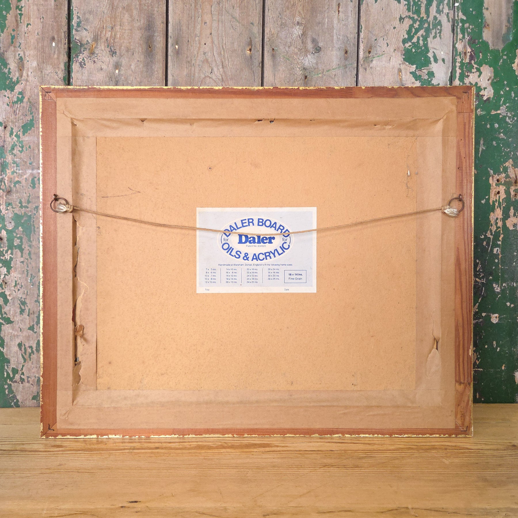 This vintage oil painting can be styled in different ways throughout the home. Above a console or sideboard, the warm tones pair well with wood, stoneware or books, creating an easy focal point. Its gilt frame complements brass or gold accents, so it works neatly with mirrors, candlesticks or small decorative objects.