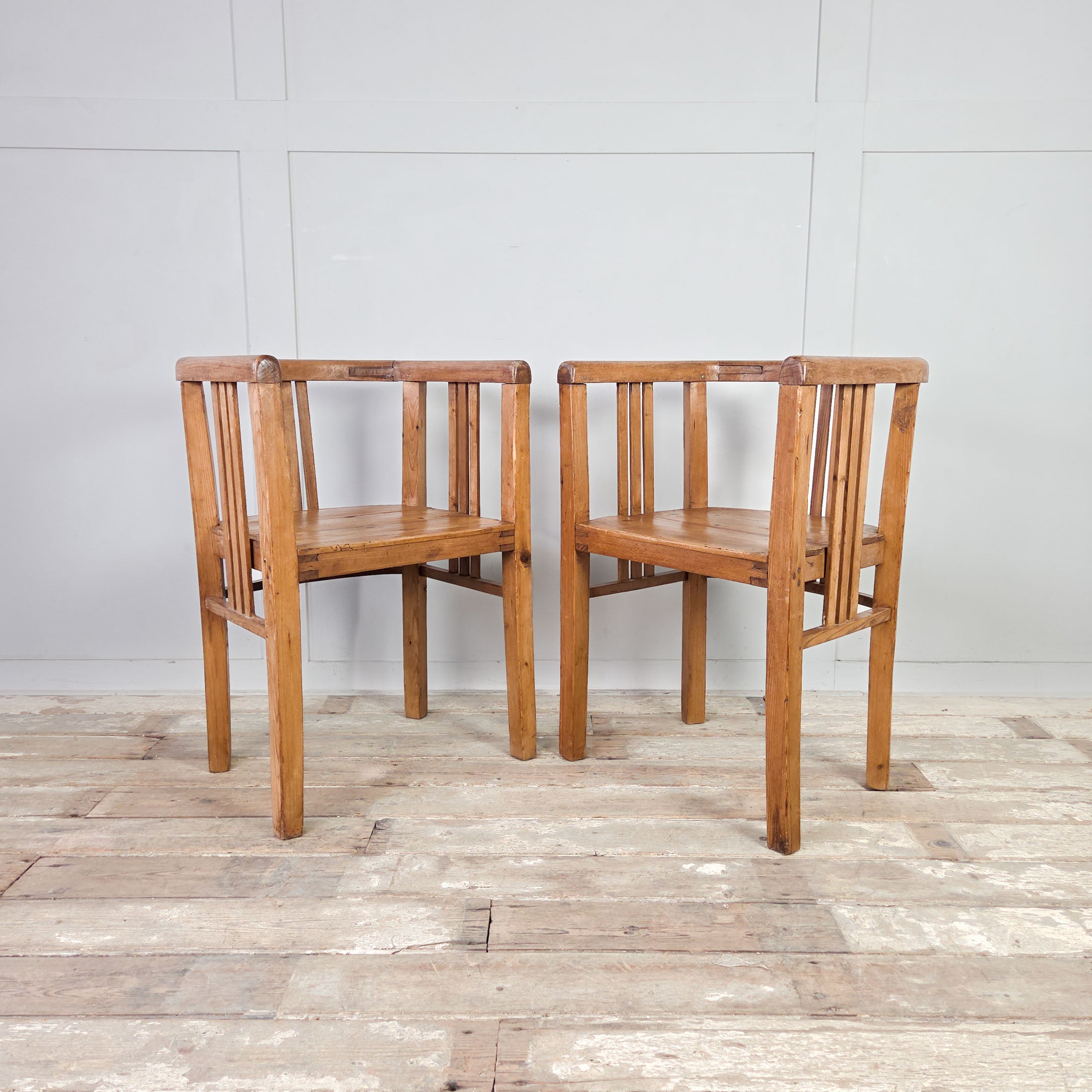 Pair Antique Pine Tub Chairs