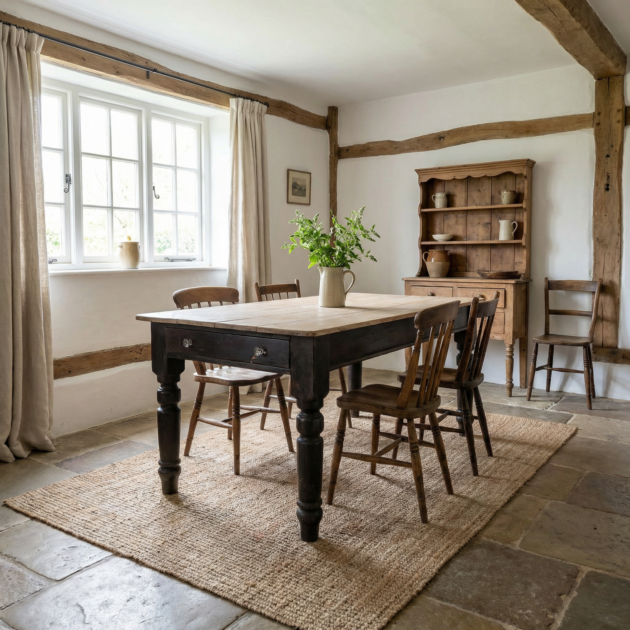 A practical piece for use as a kitchen or dining table, it would also work well as a freestanding island or prep table in a large pantry or utility room.